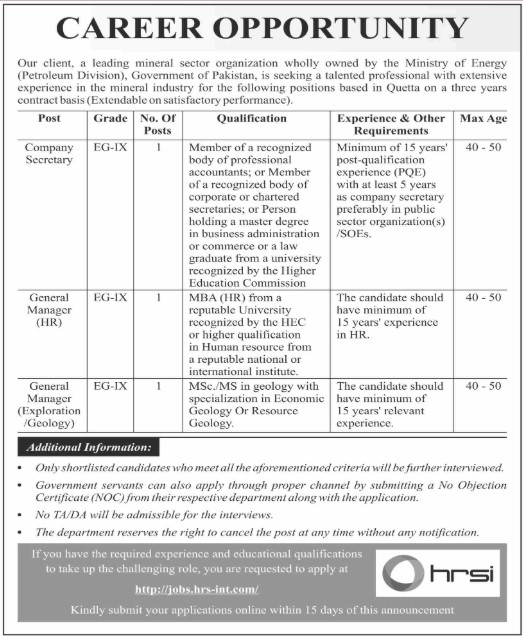 Mineral Sector Organization Jobs In Quetta November 2025 Advertisement