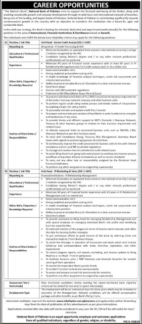 Candidates if you are seeking National Bank Of Pakistan Jobs Karachi November 2025 Apply Online if yes. It would be best if you tried to complete reading the National Bank Of Pakistan job because you can easily apply for these vacancies Unit Head-Senior Credit Analyst DG-1/API.