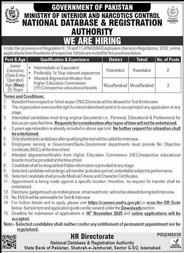 The last date to apply for this job is 16th November 2025.National Database And Registration Jobs In Islamabad November 2025 Advertisement